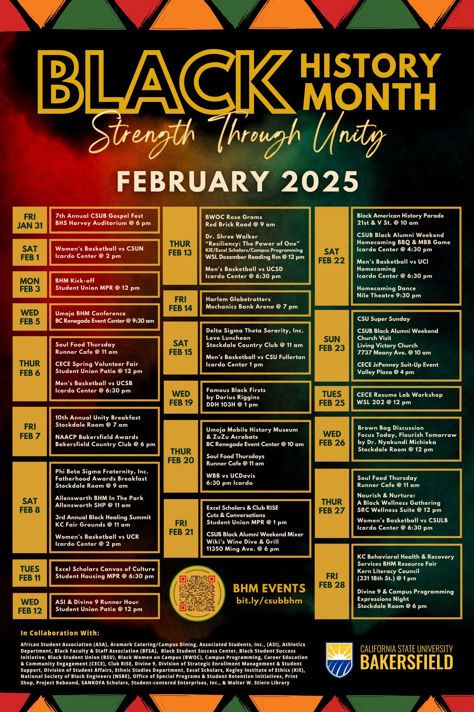 Stay connected and up to date with our Black History Month programming for 2025 at CSUB! Explore a dynamic array of programs, events, and inspiring content that celebrate the richness of Black history and culture.