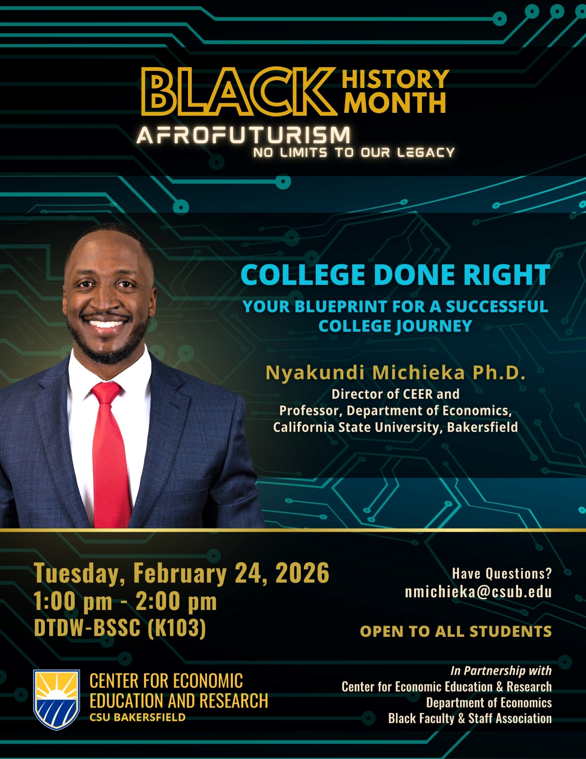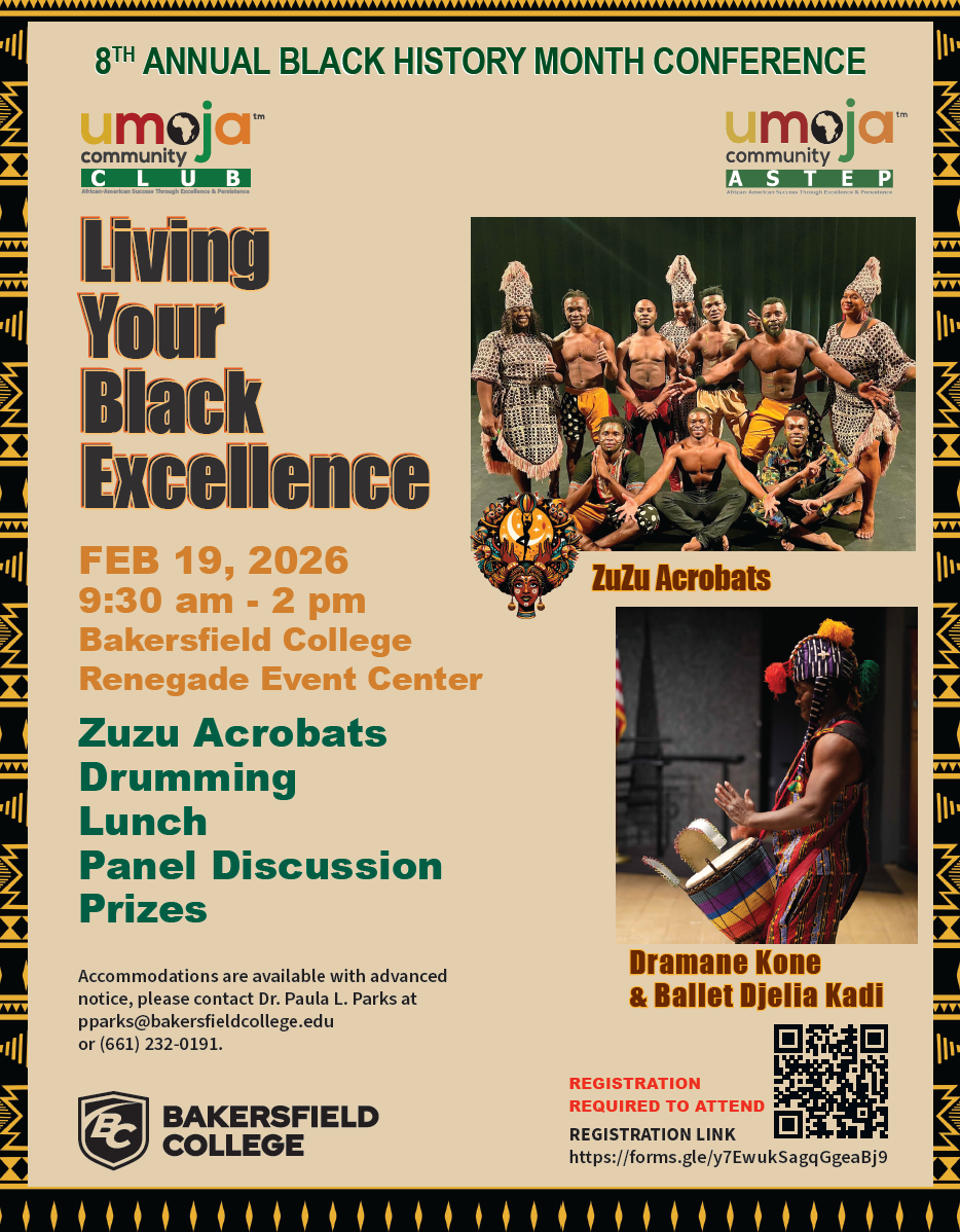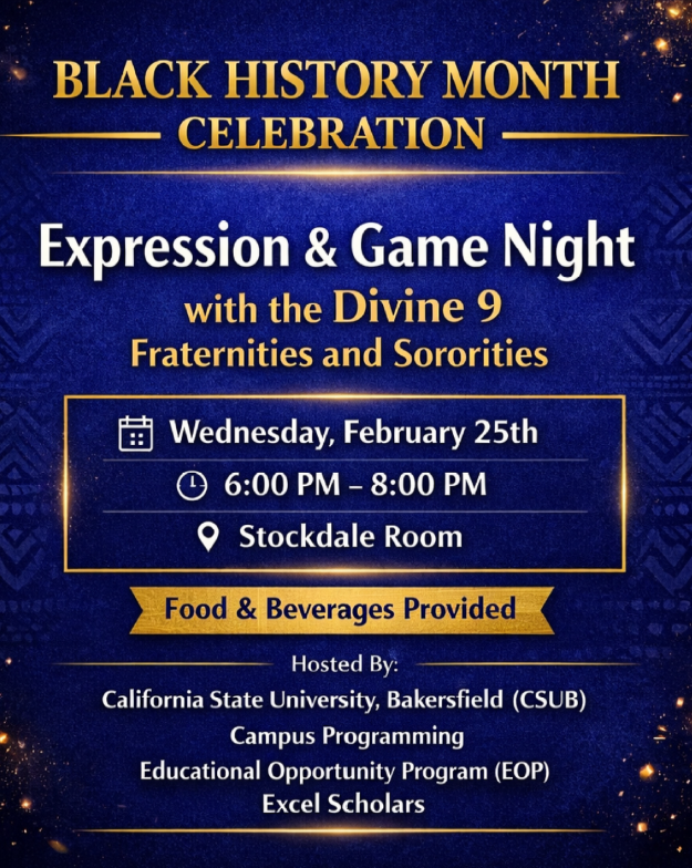 Stay connected and up to date with our Black History Month programming for 2026 at CSUB! Explore a dynamic array of programs, events, and inspiring content that celebrate the richness of Black history and culture.