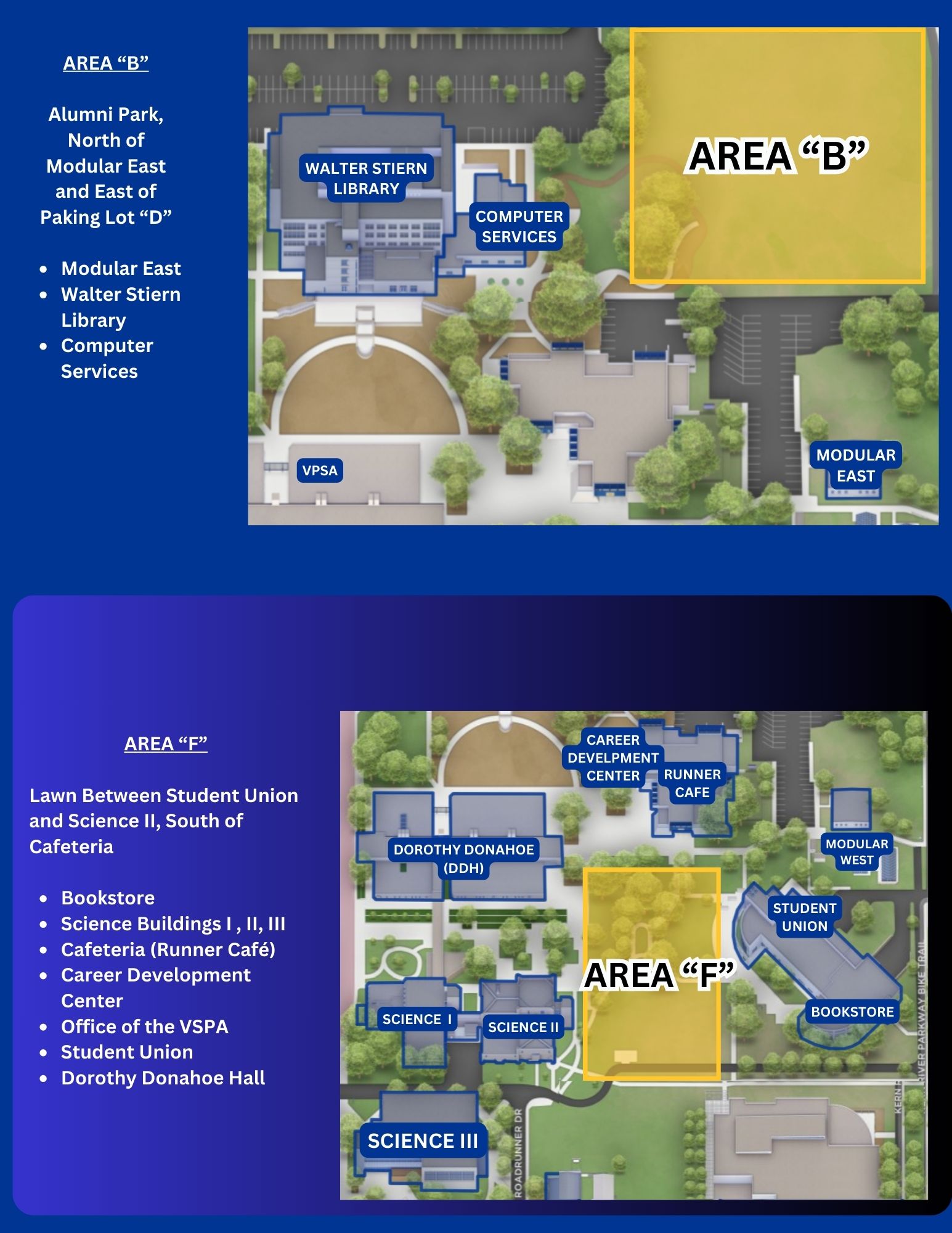 Area B, and F