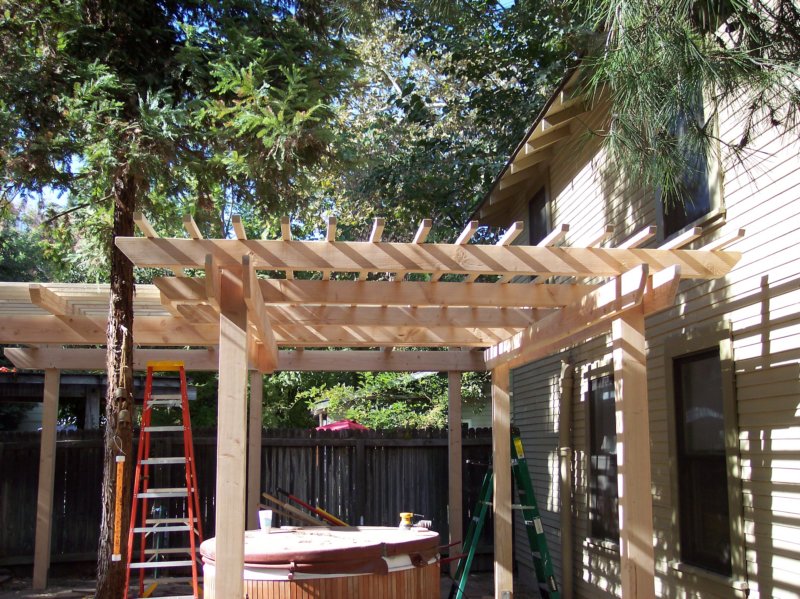 Day 5 - The 2x2s were added last. The ends are cut to match the ends of the spandler beams and the 4x6 cross-beams.
