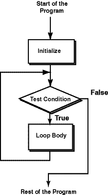 This is shown in the flowchart. Execution "flows" along the lines in the direction of the arrows. The diamond marked "Test Condition" represents the "gatekeeper." If the condition tests true, execution will continue into the loop body. If the condition tests false, execution is not allowed into the loop body.